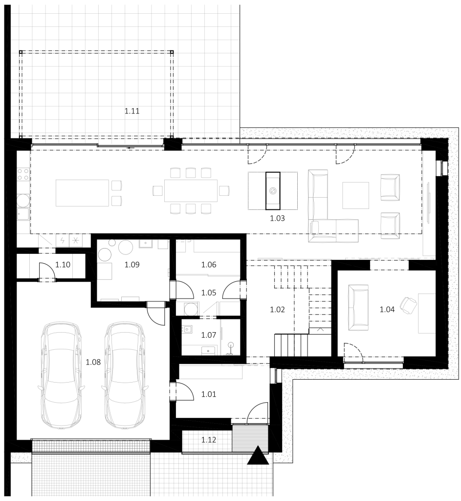 1.03 | OBÝVACÍ POKOJ A KUCH. KOUT | 89,1 m2 |